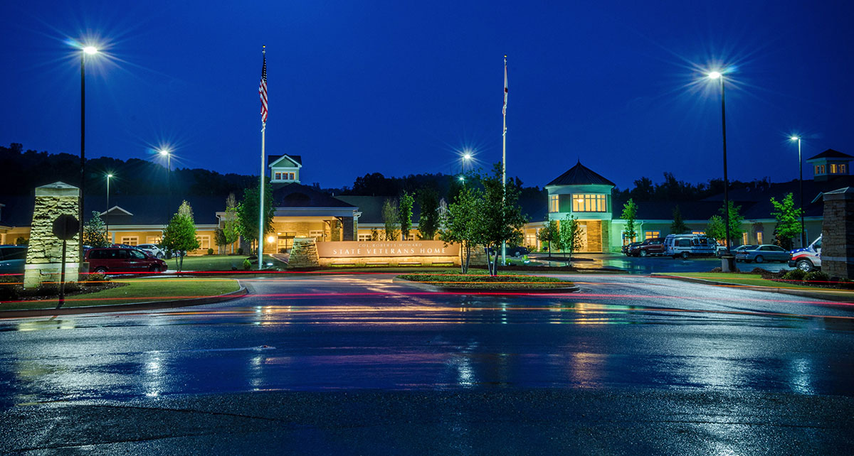 Colonel Robert L. Howard State Veterans Home is a 254-bed facility featuring skilled care, domiciliary care, and a dedicated memory care unit. Located over an hour outside of Birmingham, this home is arranged in a “small house” or neighborhood setting with a la town center and  stone fireplace that brings an instant feeling of warmth and community. Veterans love to gather in the “Stars and Stripes Café” to share a beverage, catch a ball game, and find meaningful connections.